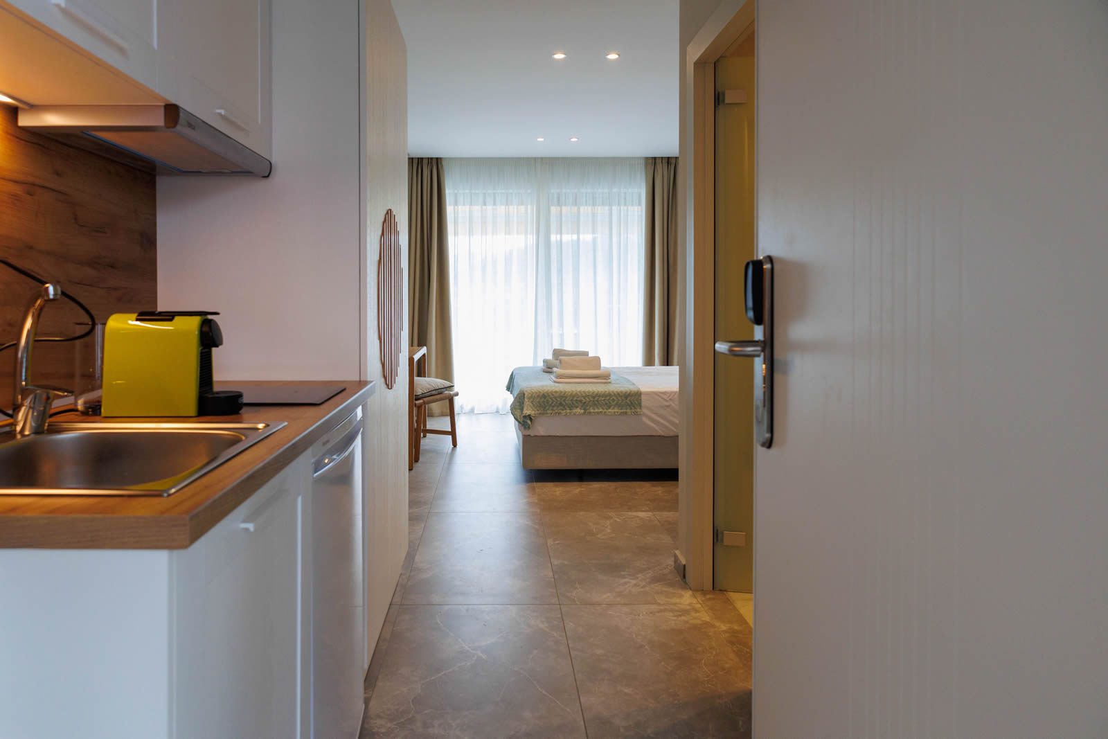 In the hotel, you will find sunbeds to enjoy the sun with the view on the third side of Chalkidiki, Mount Athos. In addition, you will have the opportunity to relax on the balcony and read books or borrow board games from our small library.